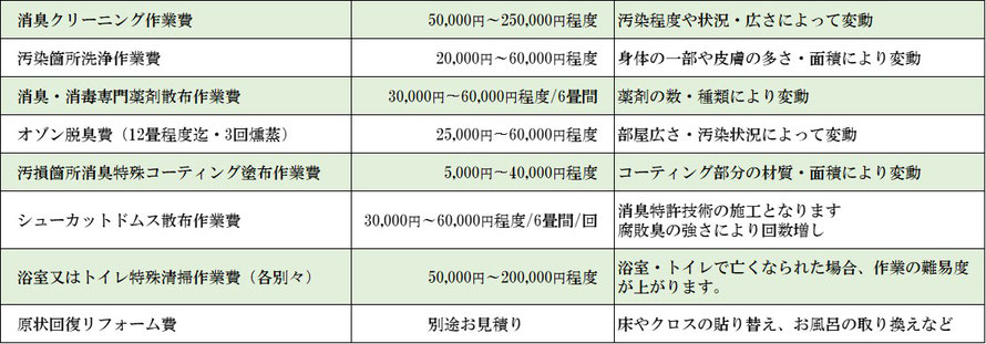 ※こちらの金額には、特殊清掃・消臭作業・解体工事・畳の撤去処分などの費用は含まれておりません。