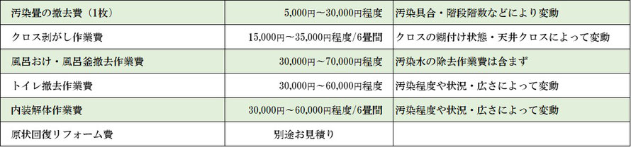 ※こちらの金額には、特殊清掃・消臭作業・解体工事・畳の撤去処分などの費用は含まれておりません。